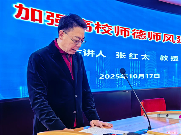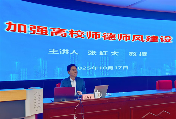 张红太教授着眼弘扬教育家精神,加强师德师风建设,提高教师培训质量,培养造就新时代高水平教师队伍,重点从深刻认识师德师风建设重大意义、当前高校师德师风建设面临的形势、切实加强新时代高校师德师风建设三个方面作了深入讲授,授课过程中列举了大量发生于国内部分高校的违反政治纪律和教学纪律、发表不当言论、学术不端、生活作风问题、侵占学生利益等方面的事例案例,以例为鉴,以案说法,以理明德,理论与实际相结合,收到了扎实有效的讲座效果。