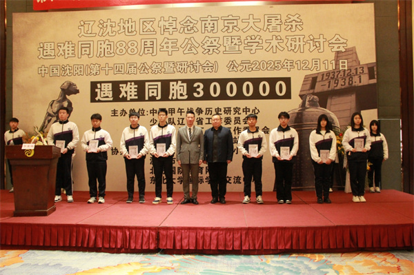 北方国防教育网·沈阳讯12月11日上午,由中国甲午战争历史研究中心等多家单位联合主办的“辽沈地区悼念南京大屠杀遇难同胞88周年公祭暨学术研讨会”在东北大学国际学术交流中心隆重举行。来自辽沈地区的专家学者、各界代表及青少年学生120余人参加了此次活动。